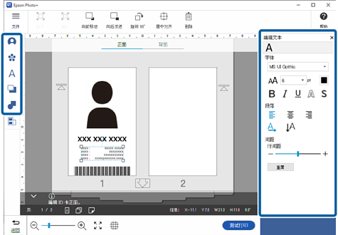 当您选择 双面 作为页面布局时,您还可以编辑卡片背面。选择编辑屏幕顶部的 背面,然后添加图片、文本等。