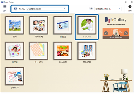 选择打印机,然后单击 CD/DVD。
