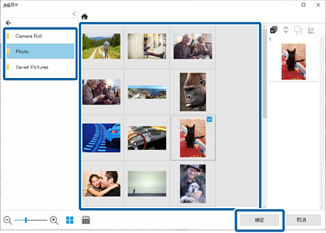 可在右侧的相片列表中检查所选相片。