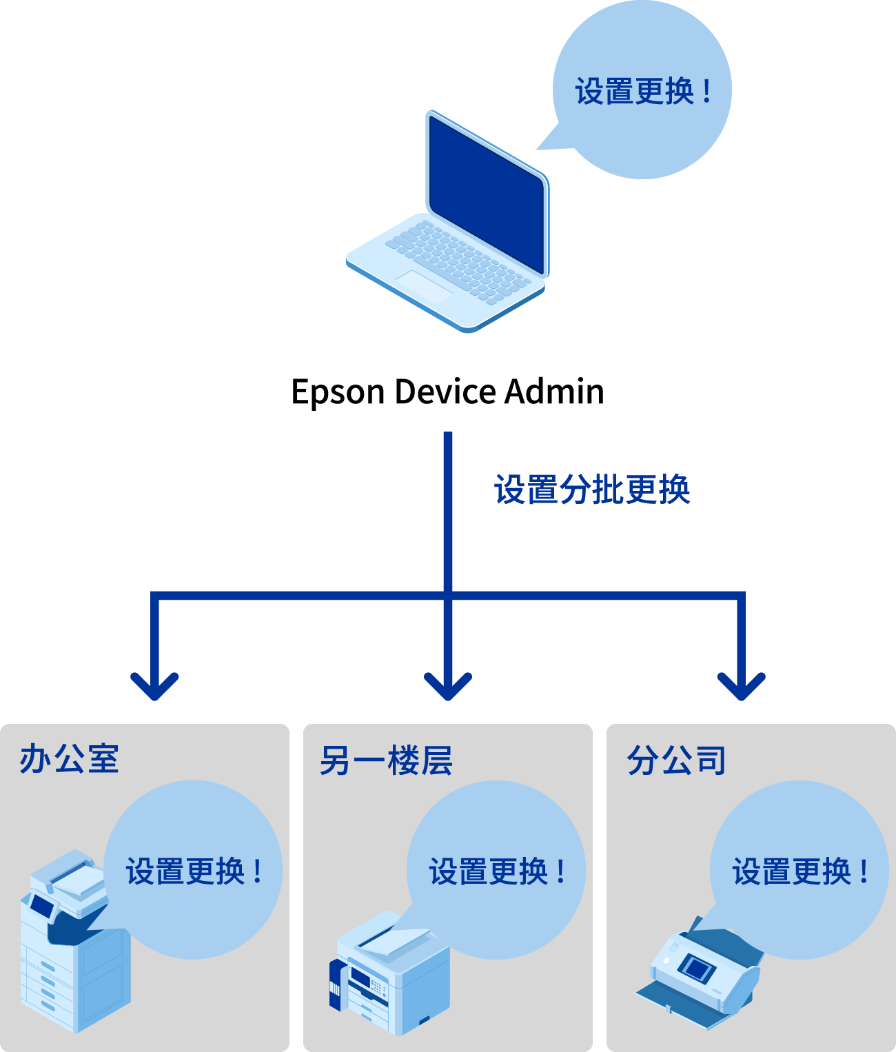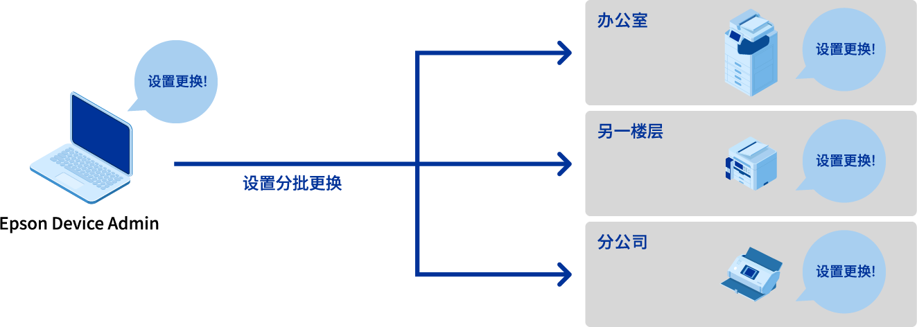 “Epson Device Admin”允许您在网络上使用远程操作批量配置设备。