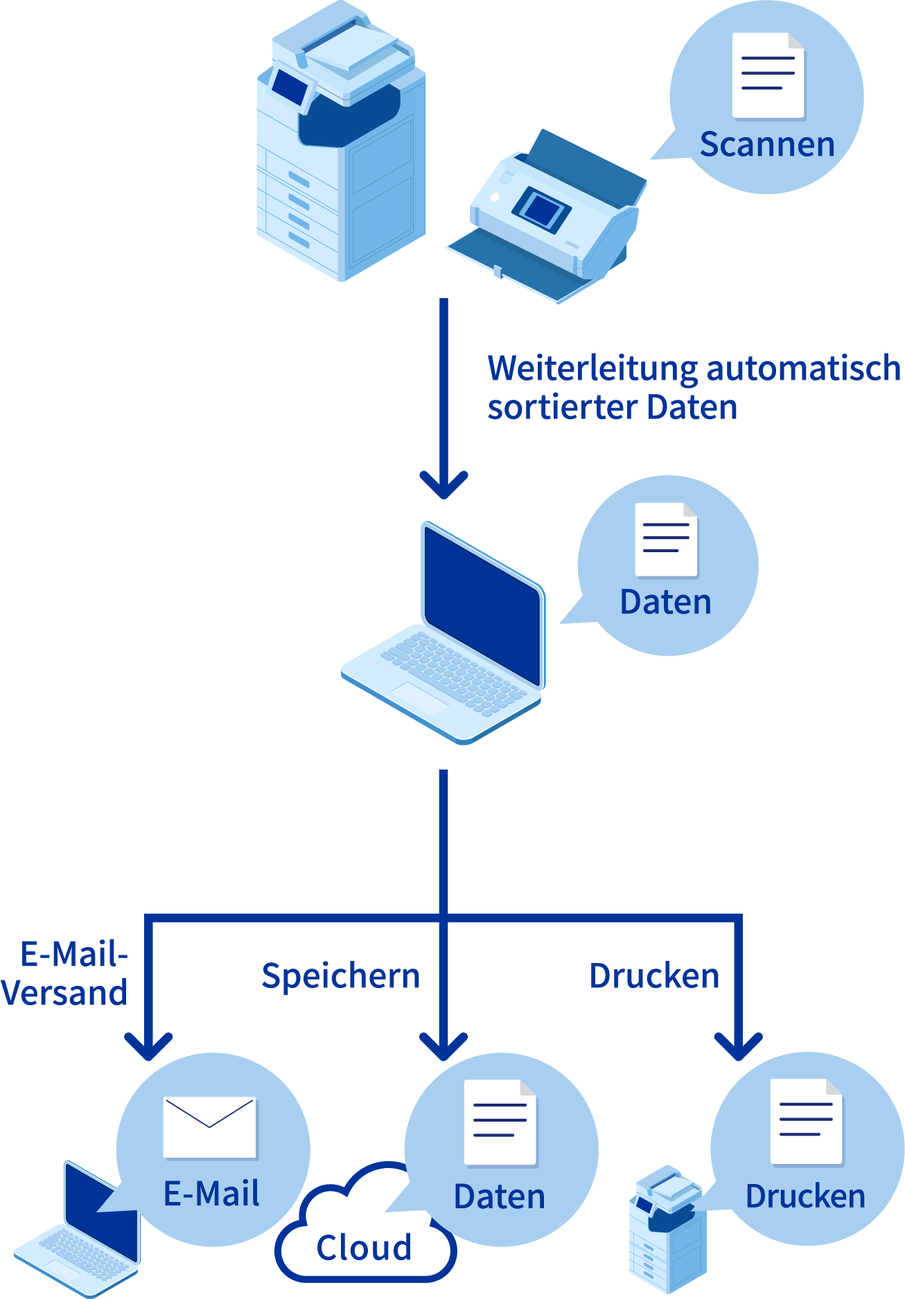 Mit der Scananwendung „Document Capture Pro“ können Sie große Mengen von Dokumenten digitalisieren und diese dann leichter verwalten.