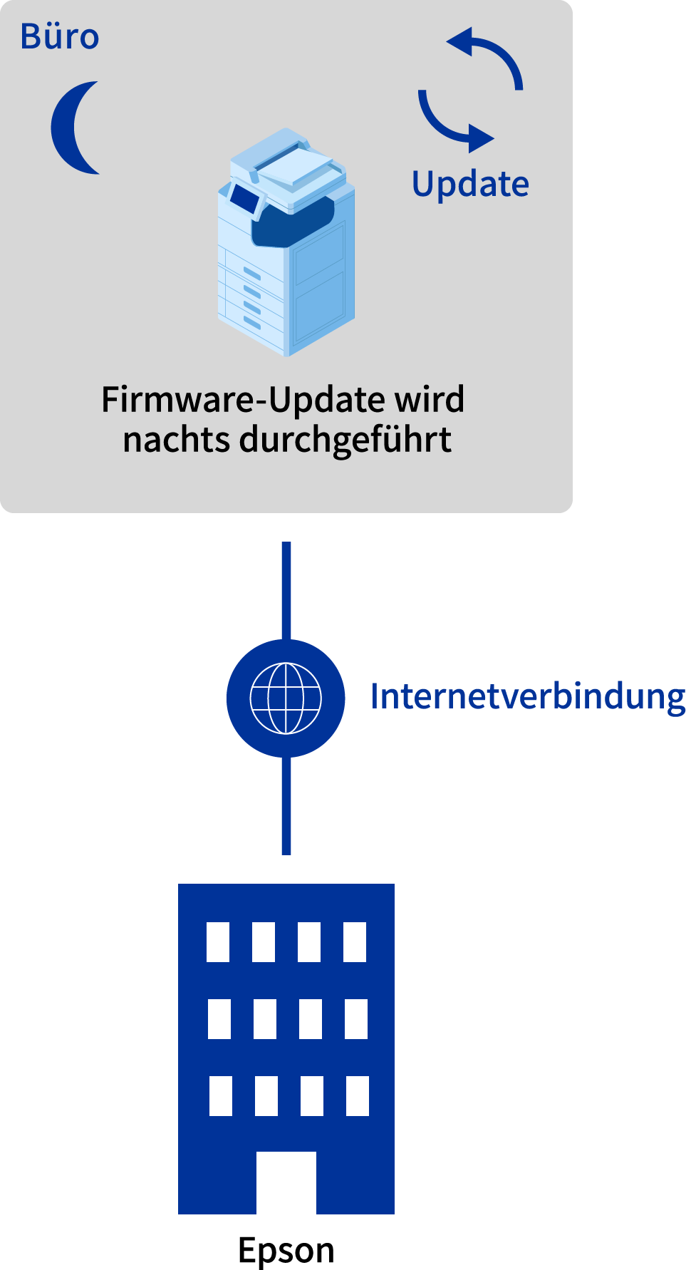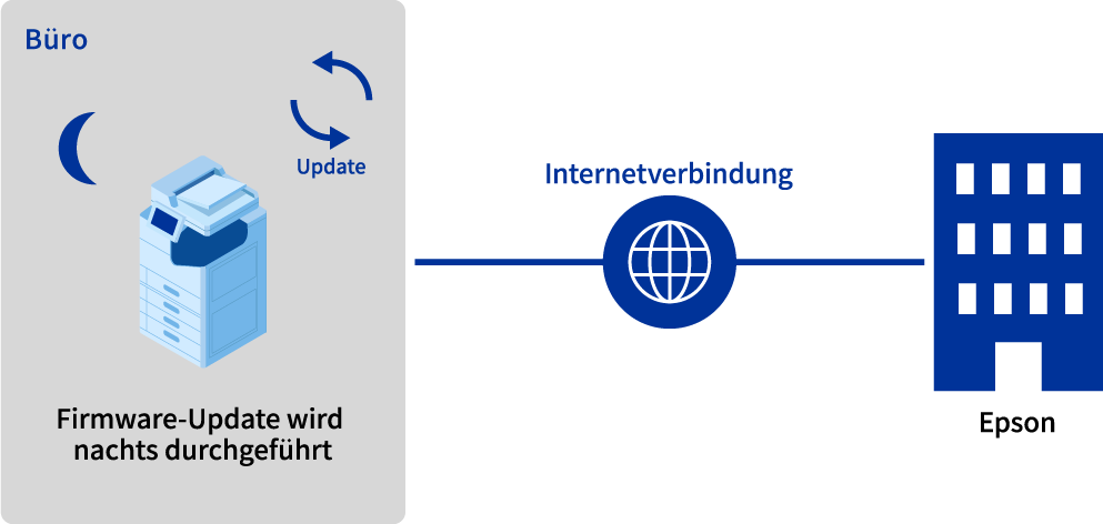 Die Aktualisierung der Firmware erhöht die Sicherheit und verbessert die Benutzerfreundlichkeit. Bei Epson Multifunktionsdruckern können Sie einen Tag und eine Uhrzeit festlegen, zu der die Firmware automatisch aktualisiert wird, ohne dass dadurch die Arbeit behindert wird. So erhalten Sie einen dauerhaft stabilen Betrieb, ohne Ausfallzeiten der Geräte.