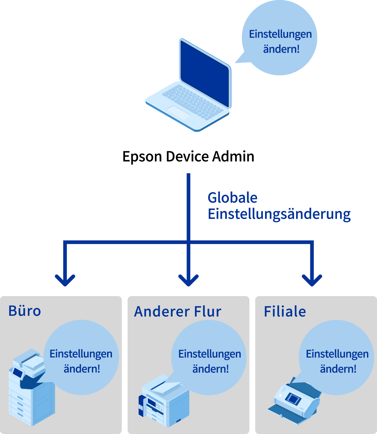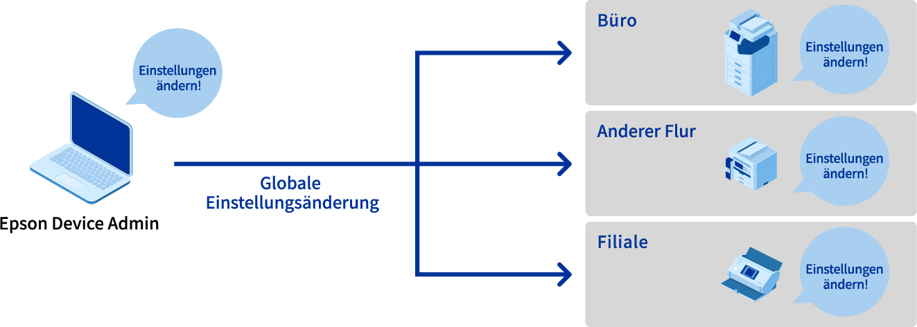 Das individuelle Konfigurieren mehrerer installierte Geräte oder das Konfigurieren von Geräten, die an unterschiedlichen Standorten sind, ist sehr mühsam.