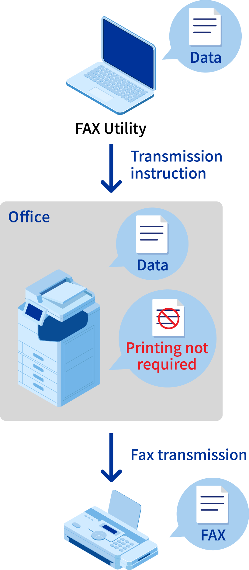 "FAX Utility" lets you send digital data created on a PC by fax as-is without needing to print it out. You can also transfer data from received faxes to a PC without having to print it. In addition to reducing the amount of paper wasted, this lowers the risk of information leaks caused by people leaving documents lying around carelessly.