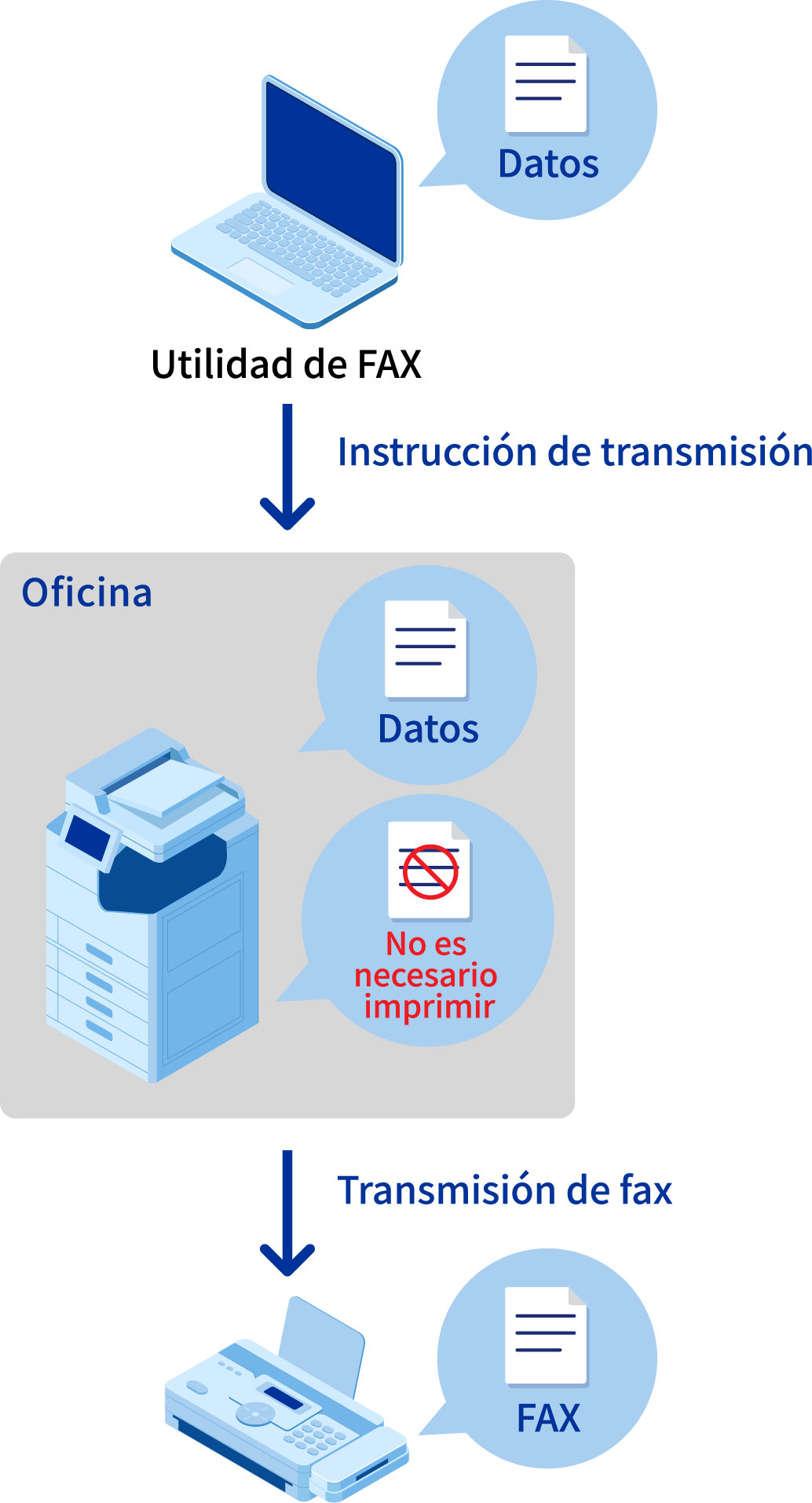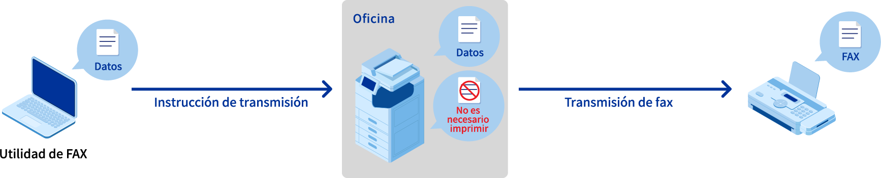 La "Utilidad de FAX" te permite enviar por fax datos digitales creados en un PC tal cual, sin necesidad de imprimirlos. También puedes transferir los datos de los faxes recibidos a un PC sin necesidad de imprimirlos. Además de reducir la cantidad de papel desperdiciado, esto disminuye el riesgo de filtraciones de información provocadas por personas que dejan documentos desatendidos.