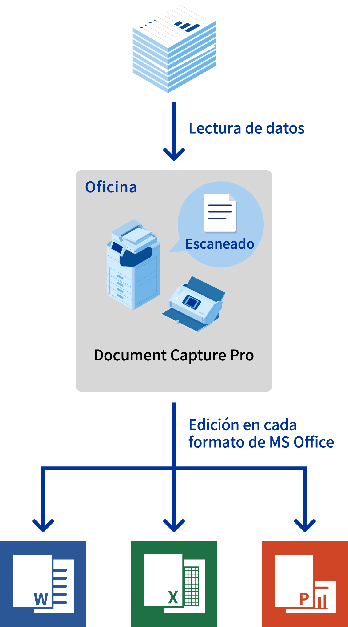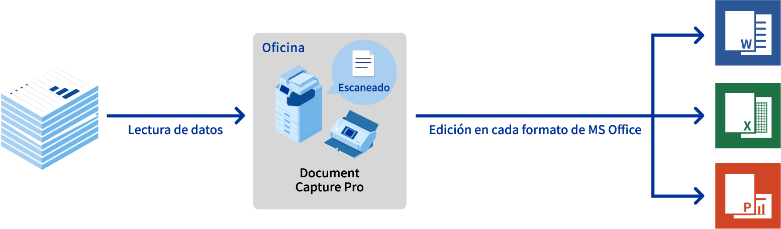 La aplicación de escaneado "Document Capture Pro Enhanced OCR" facilita la conversión de los datos digitalizados en una gran variedad de archivos, como archivos Excel® y PowerPoint®.