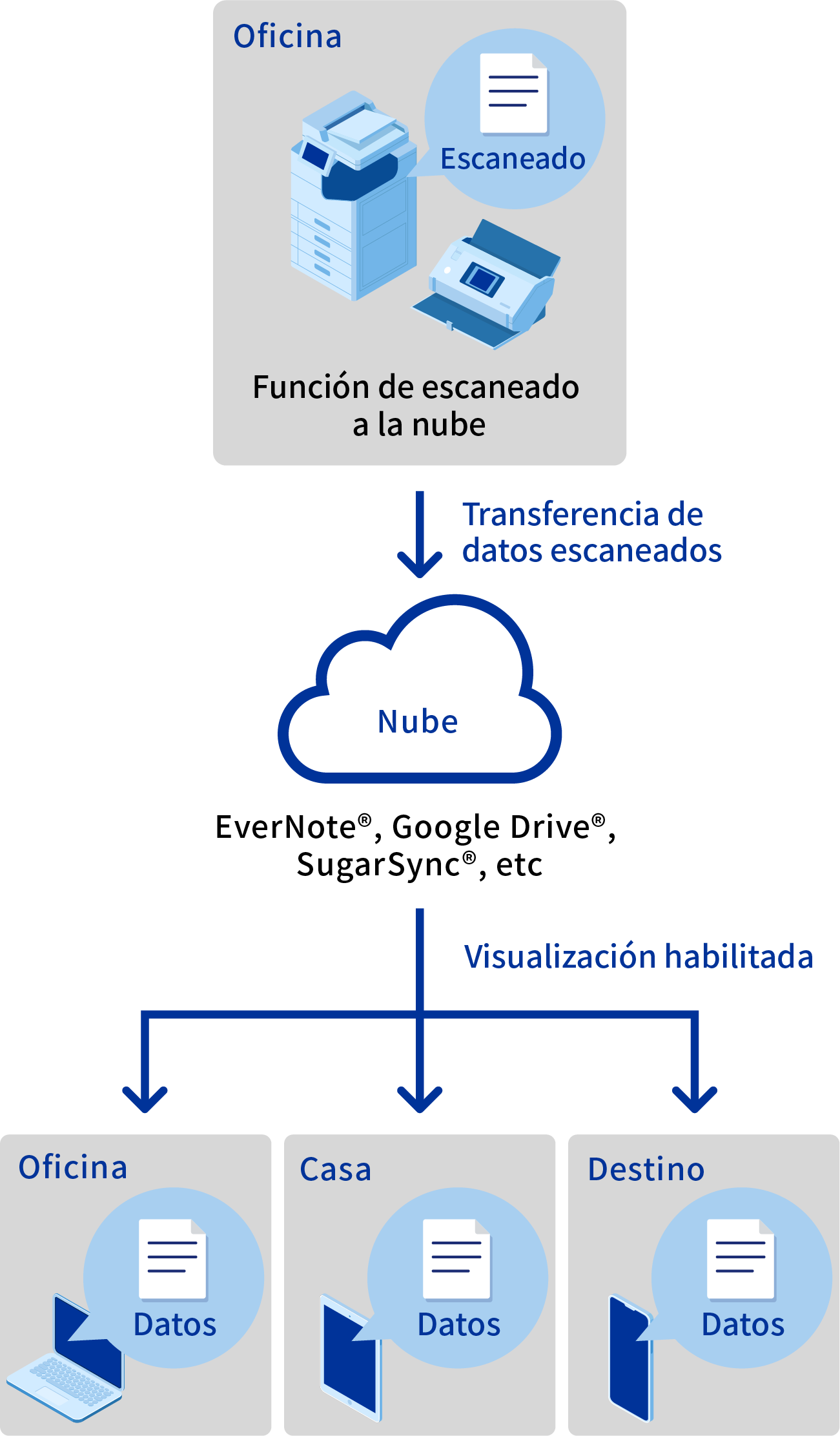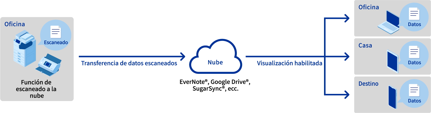La función "Escanear a la nube" te permite transferir los datos escaneados a un servicio en la nube. Una vez escaneados, podrás