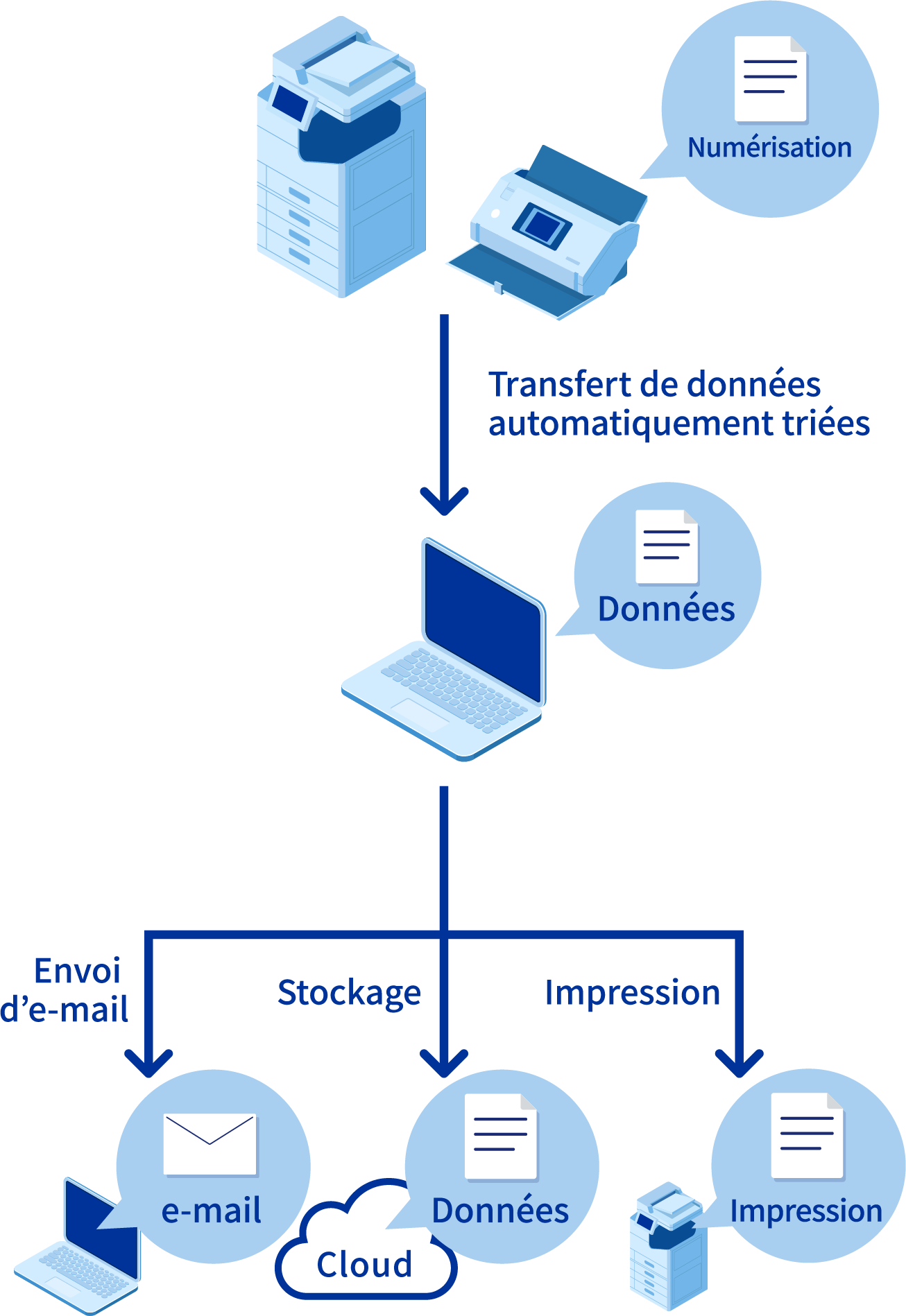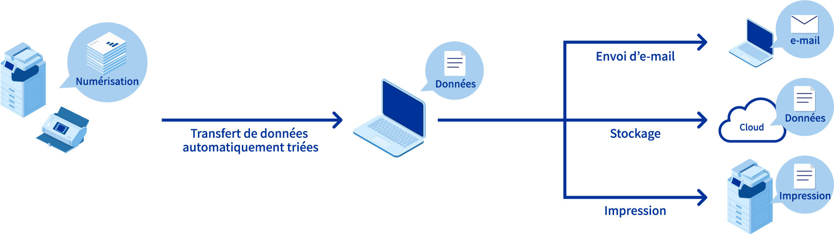 Le logiciel de capture documentaire « Document Capture Pro » vous permet de numériser d'importants volumes de documents pour faciliter leur réutilisation. Elle comprend une fonction OCR qui ajuste automatiquement l’orientation de la page et supprime les pages blanches lors de la numérisation.