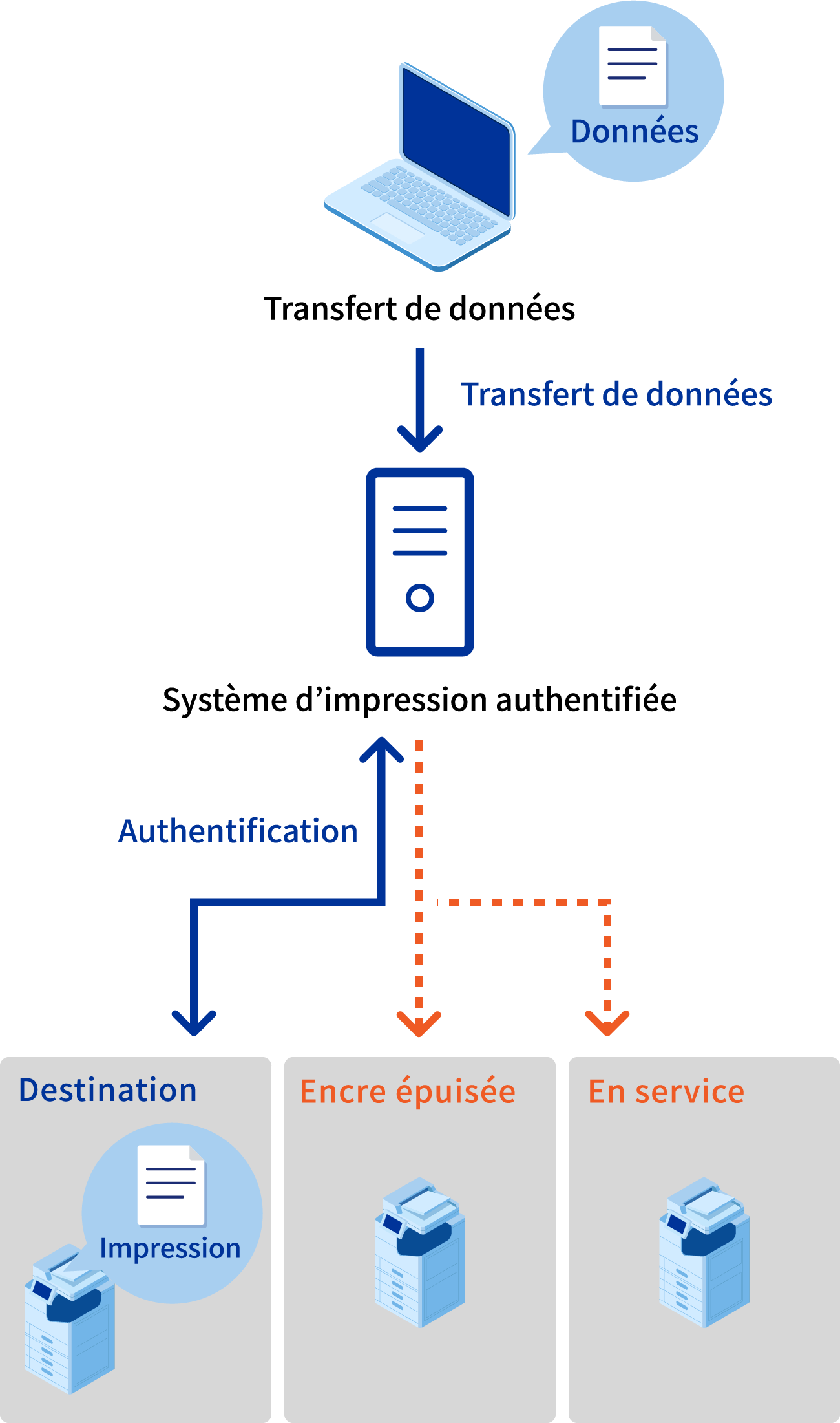 Utilisez la fonction « Impression maintenue » du logiciel de gestion des impressions « Epson Print Admin » pour imprimer à partir d’une solution d'impressoin disponible, en évitant celles qui sont en cours d’utilisation,