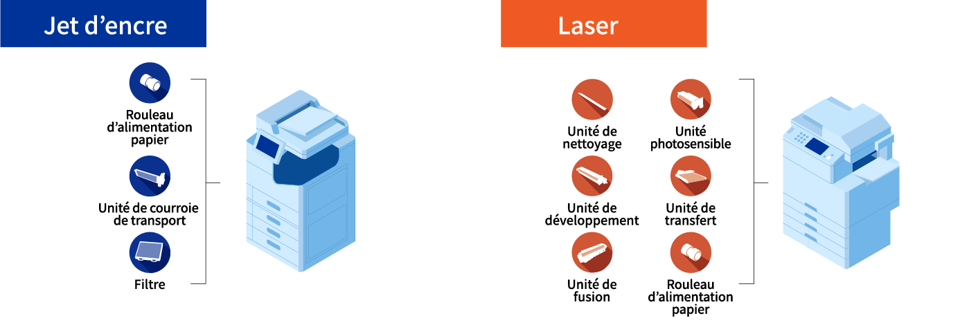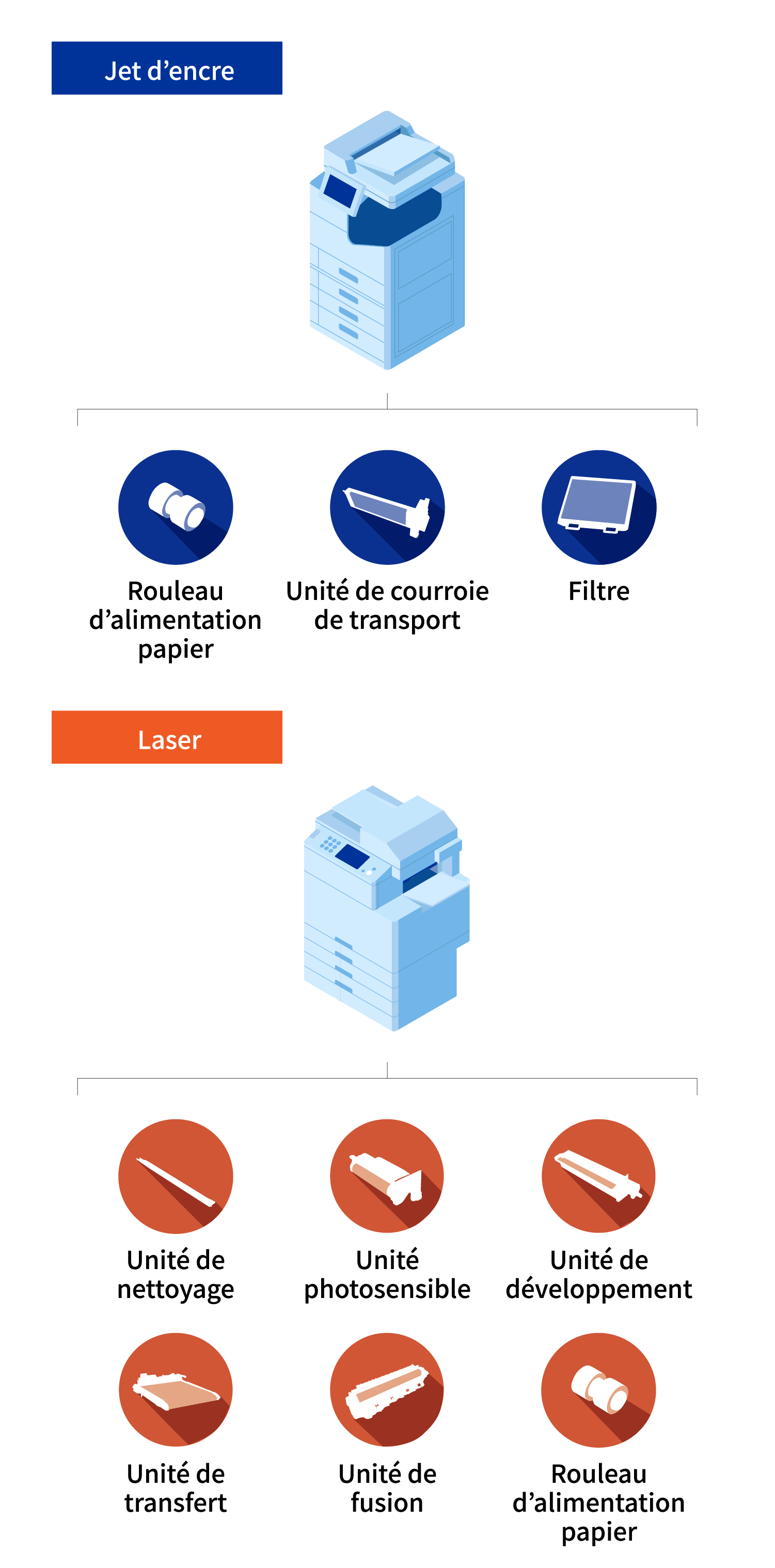 Le type et le nombre de consommables réels et de pièces à remplacer régulièrement varient en fonction du modèle.
