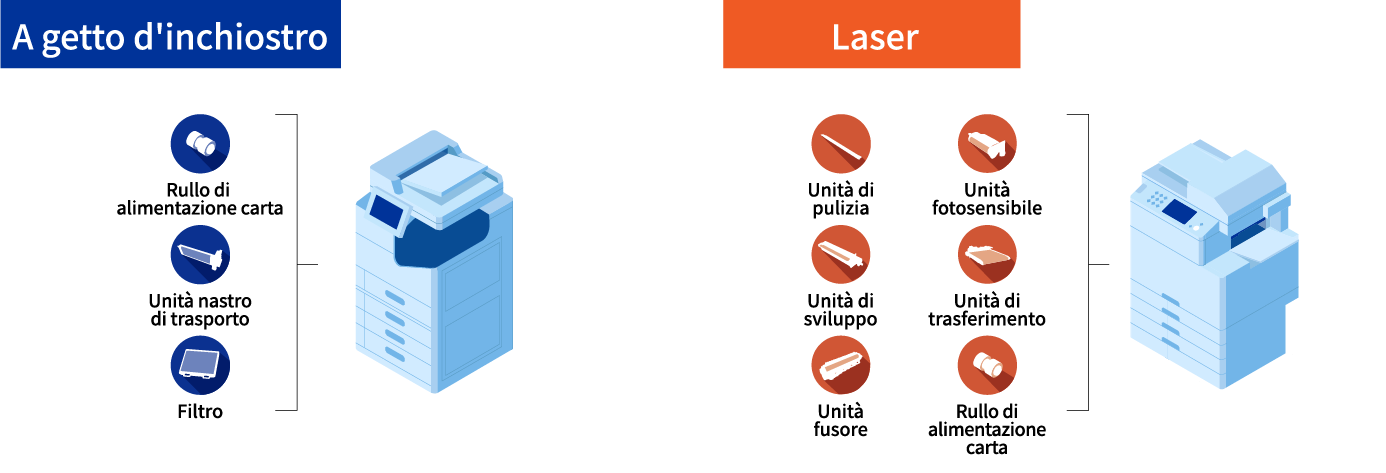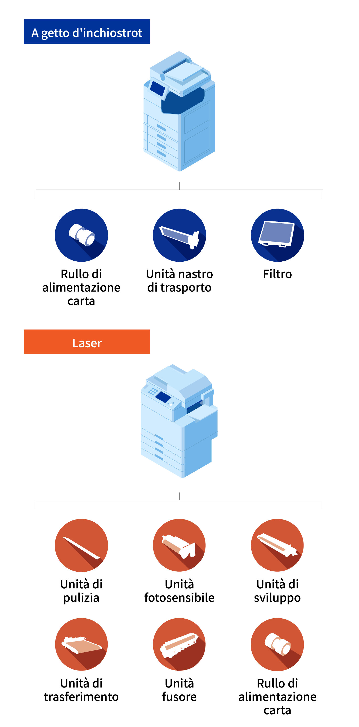 Il tipo e il numero di materiali di consumo effettivi e componenti da sostituire periodicamente variano a seconda del modello.