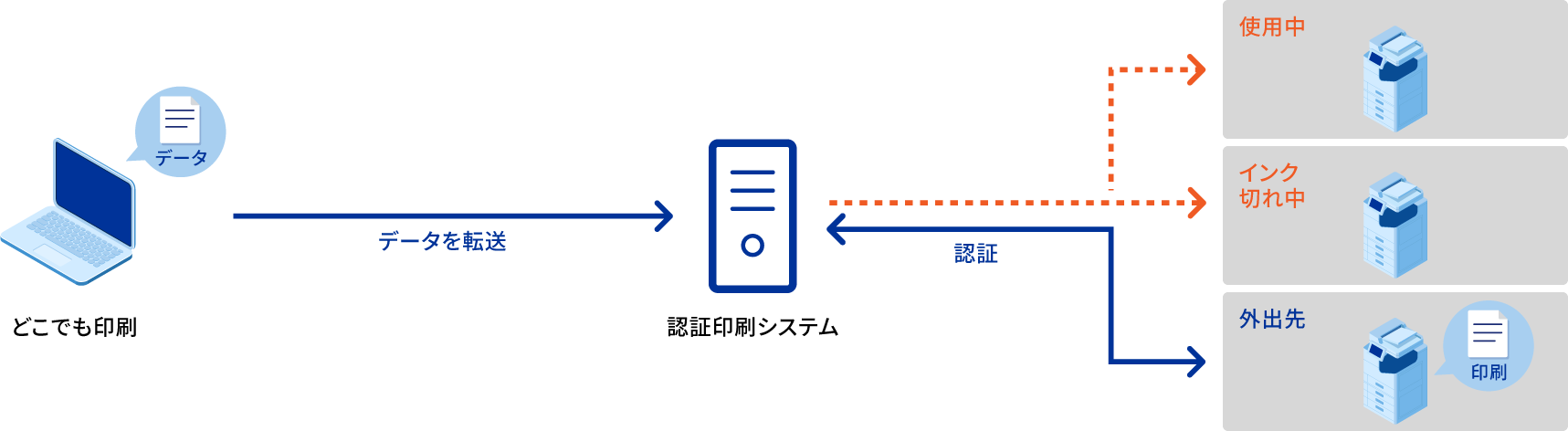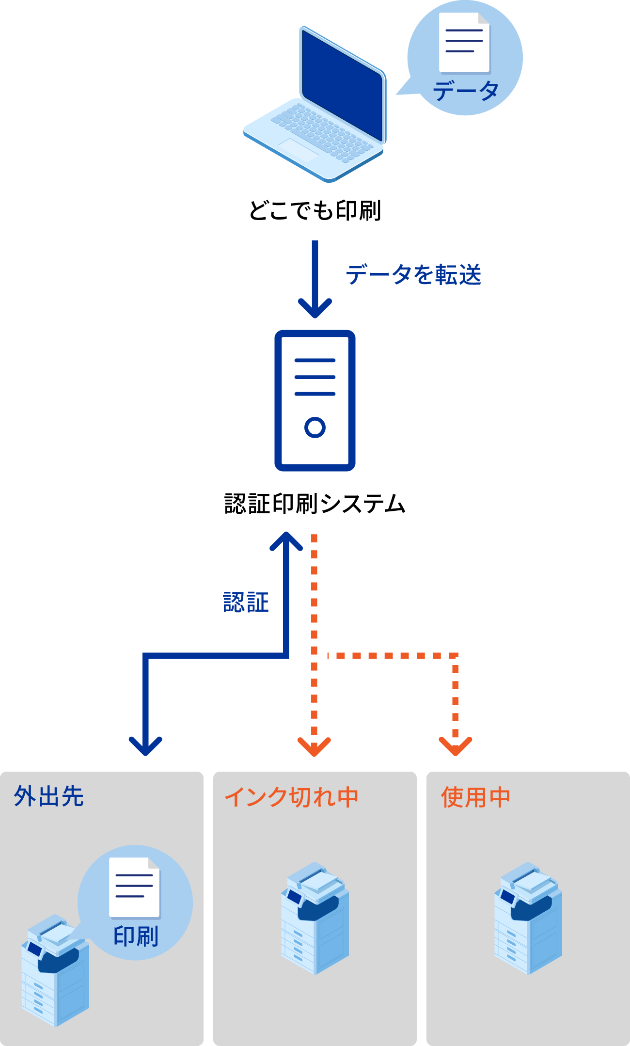 機能「どこでも印刷」を活用すれば、使用中、用紙やインク切れ、