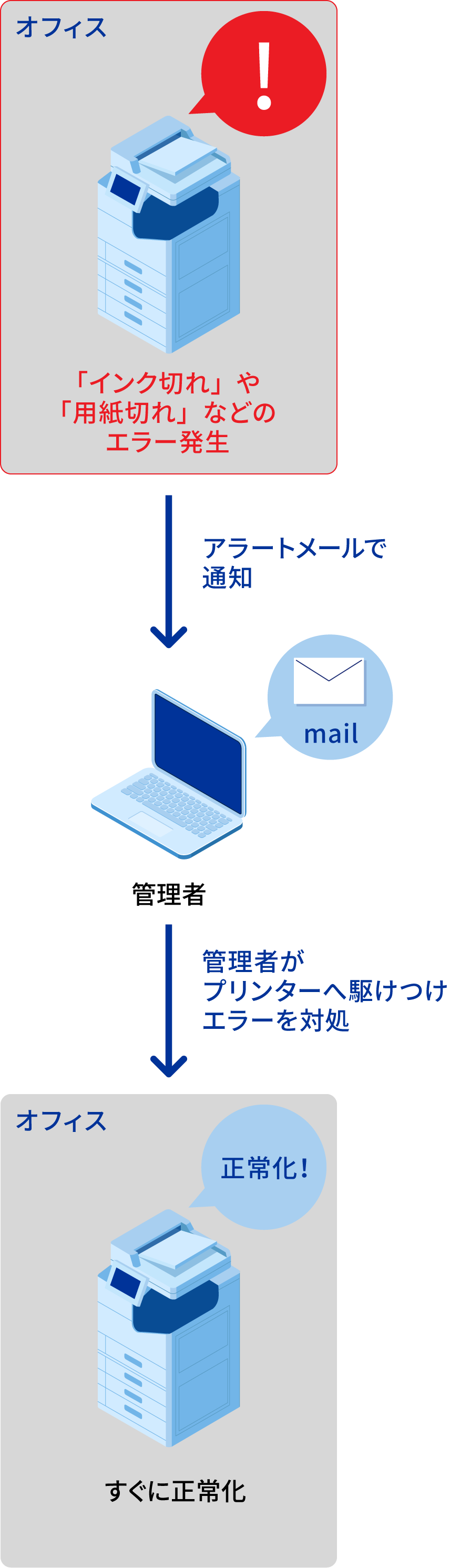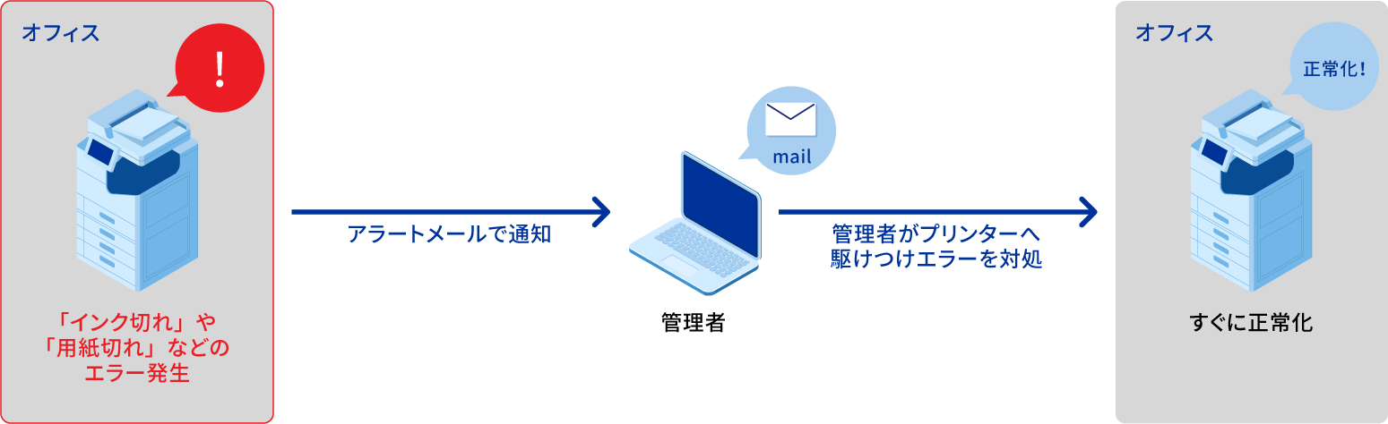 異常が発生したプリンターの元に、