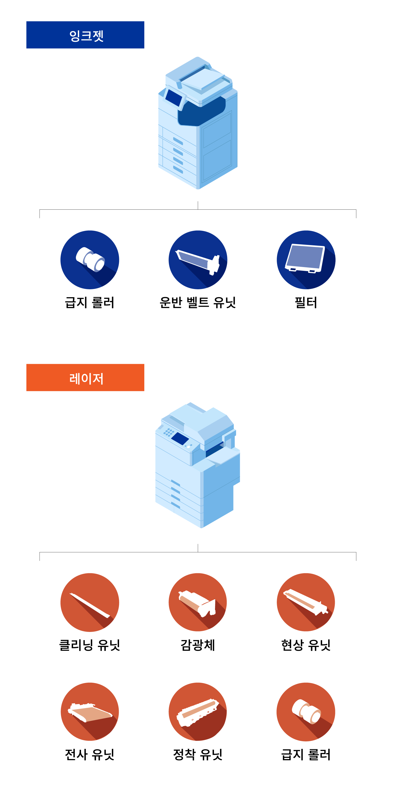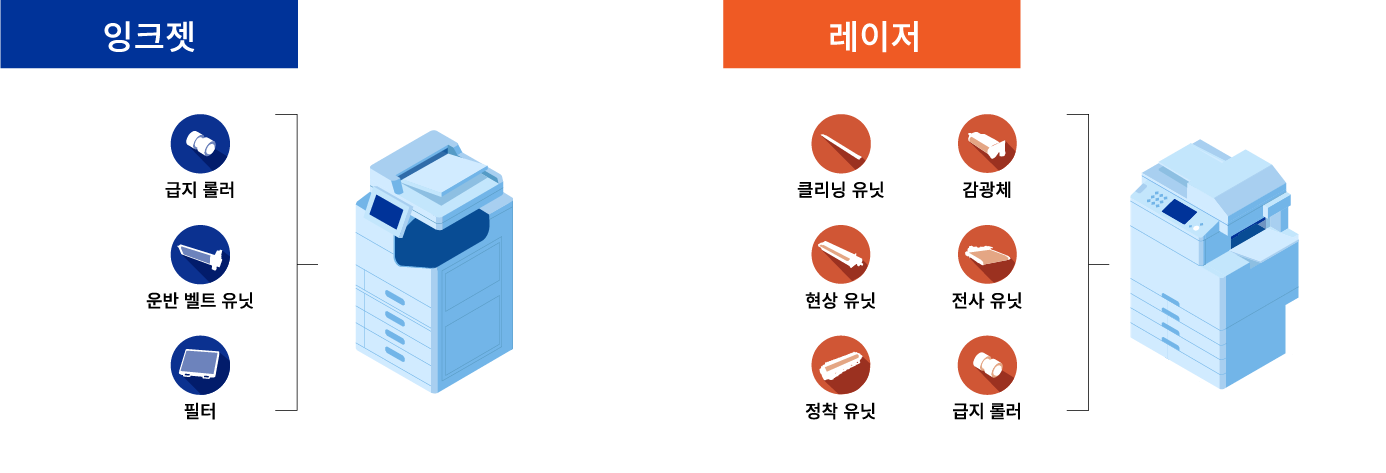 *인쇄 매수가 120만매를 넘으면 급지 롤러, 운반 벨트 유닛, 필터 이외의 교환 부품도 필요.