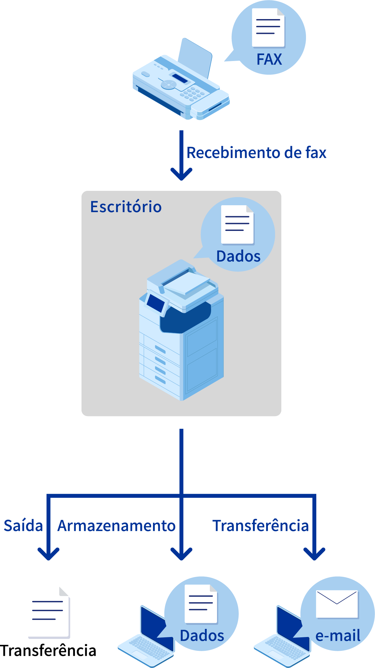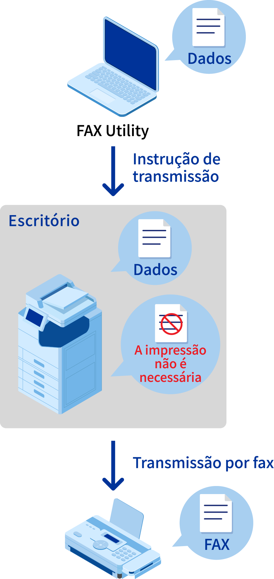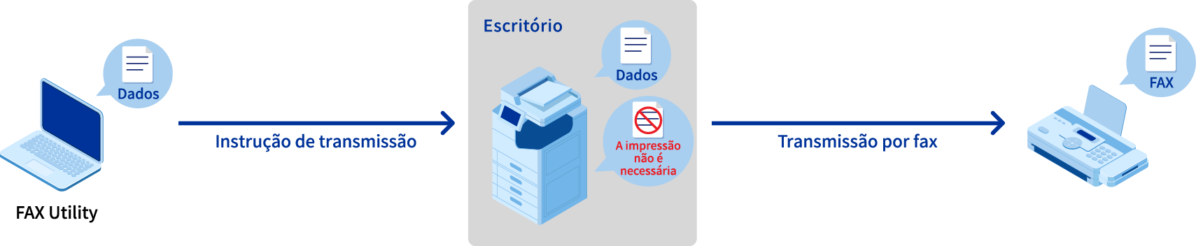 O "FAX Utility" permite que você envie dados digitais criados em um PC por fax diretamente, sem precisar imprimi-los. Também é possível transferir dados de faxes recebidos para um PC sem precisar imprimi-los. Além de reduzir a quantidade de papel desperdiçado, isso diminui o risco de vazamentos de informações causados por pessoas desatentas que deixam documentos em qualquer lugar.