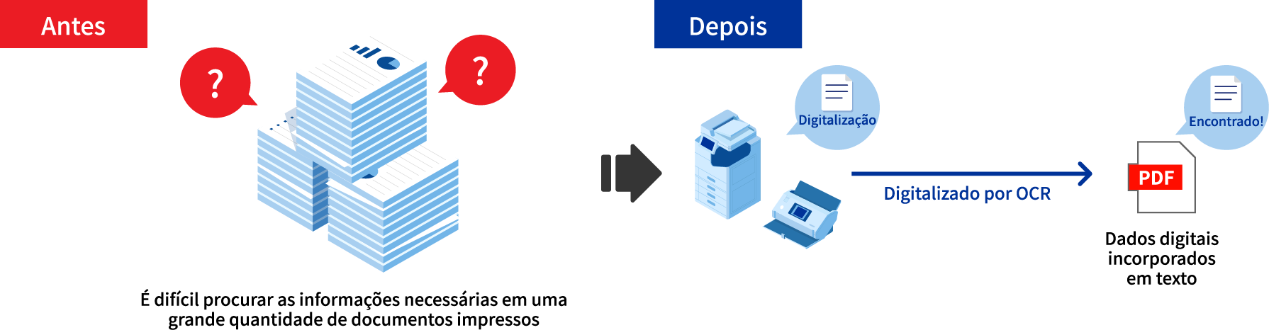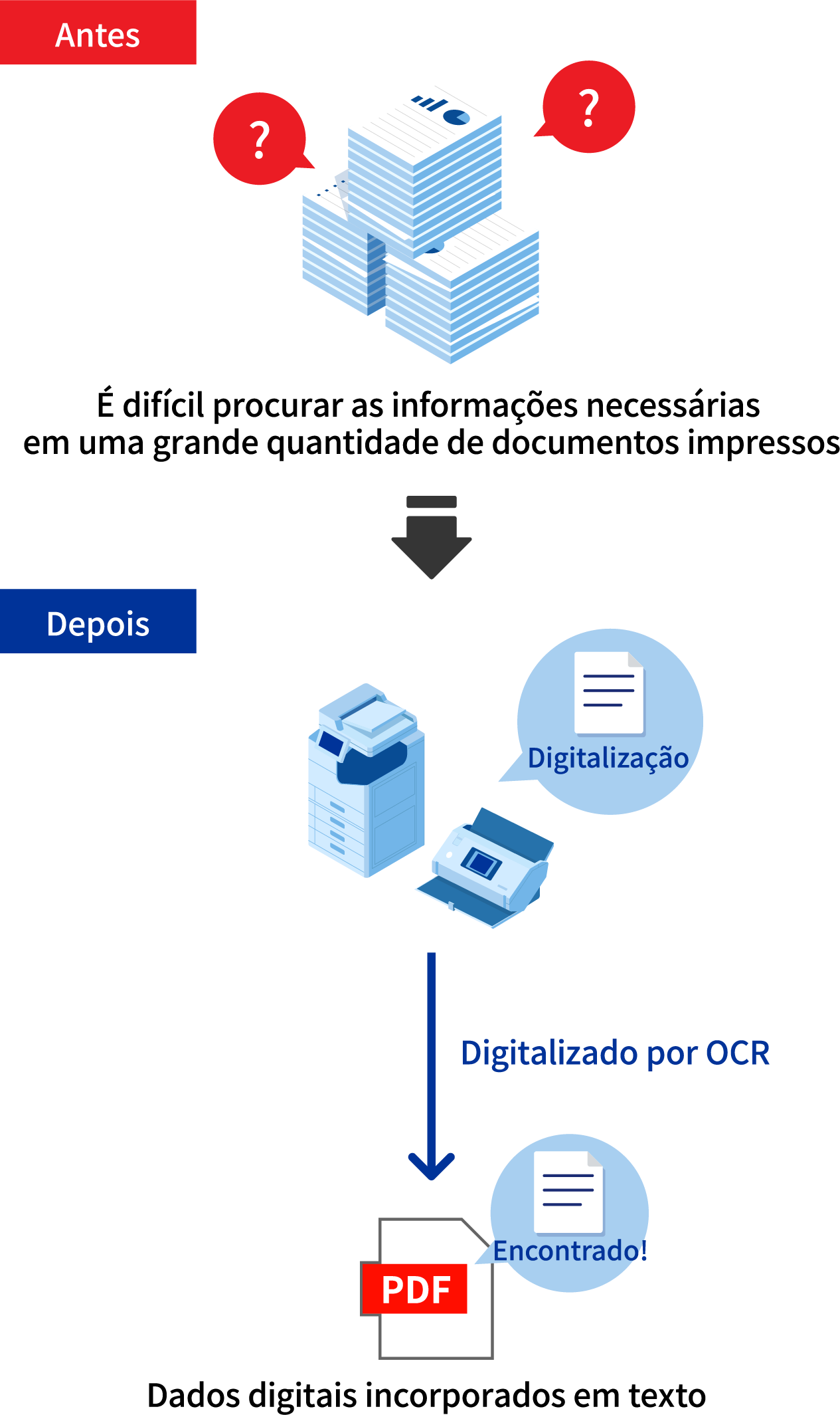 Quando usado em conjunto com o OCR, o aplicativo de scanner "Document Capture Pro" permite converter dados digitalizados em um PDF com texto incorporado, facilitando a localização das informações que você está procurando. Nos produtos da série AM, a função OCR está disponível de forma autônoma.