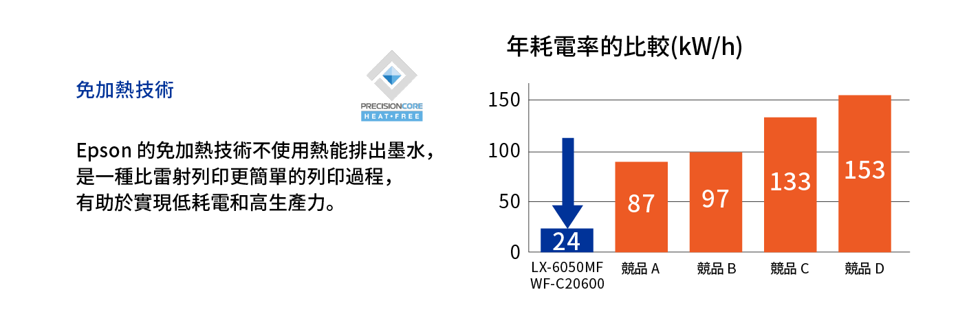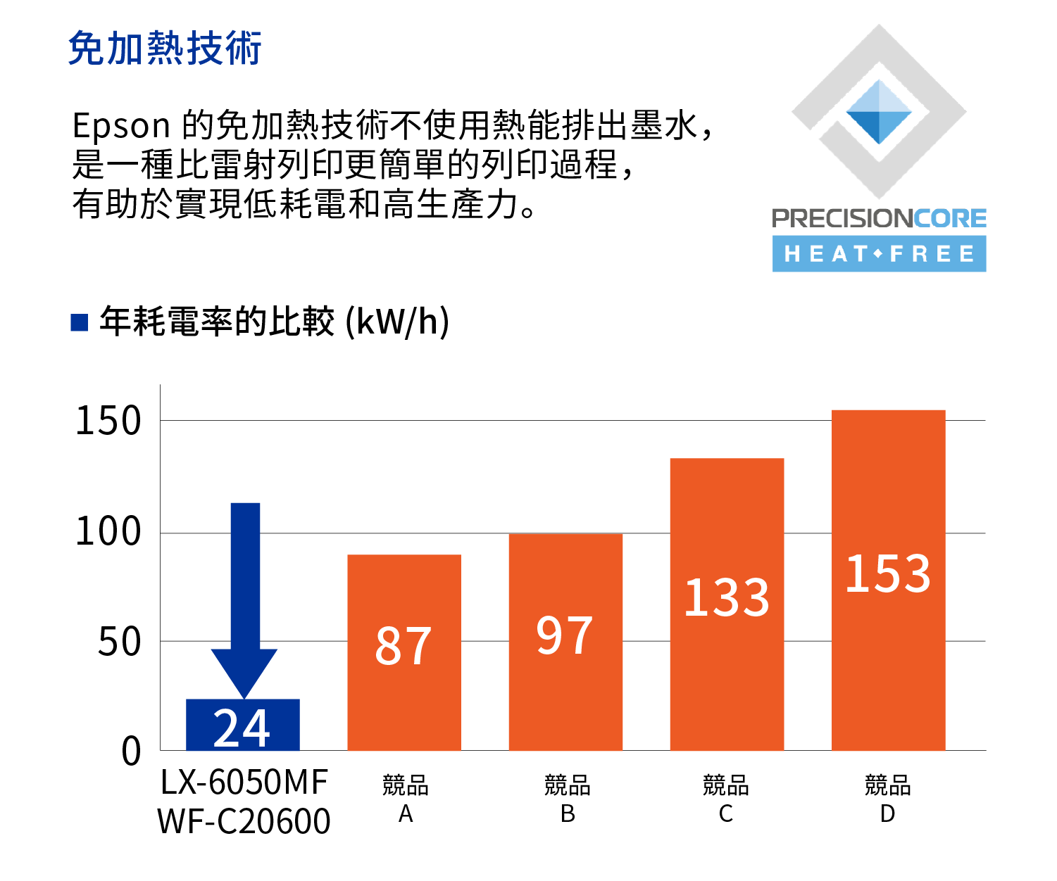 Epson 獨特的噴墨技術在列印過程中不使用熱能,與雷射印表機相比,