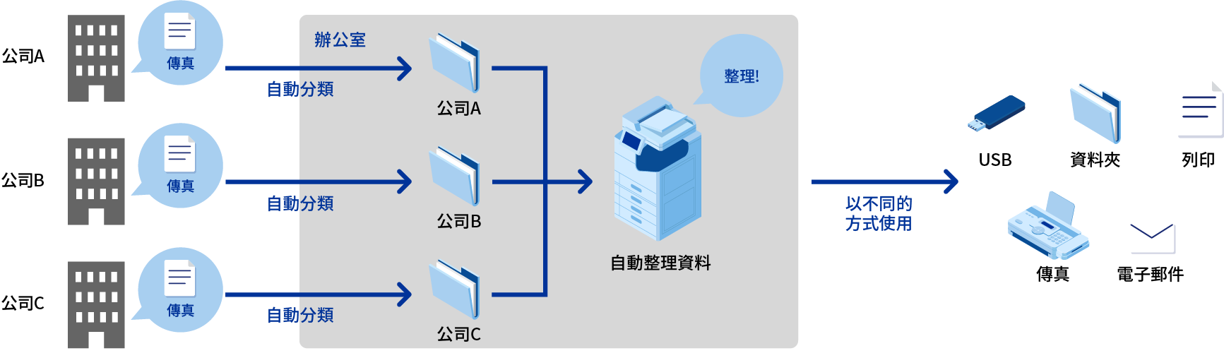 接收到的傳真資料可以根據來源、接收線路或接收時間等因素自動儲存到裝置