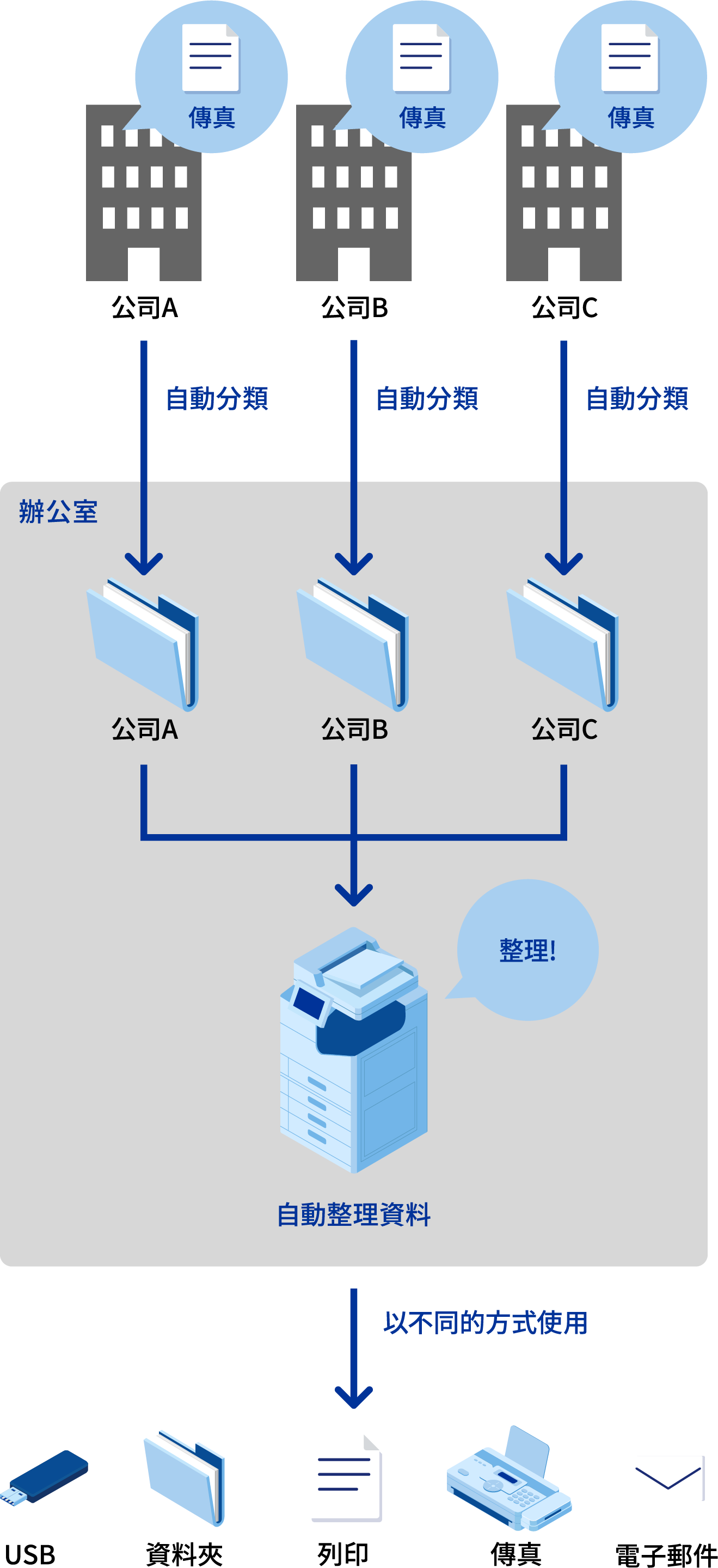 本身的傳真資料夾、指定文件夾、雲端或 USB 隨身碟,