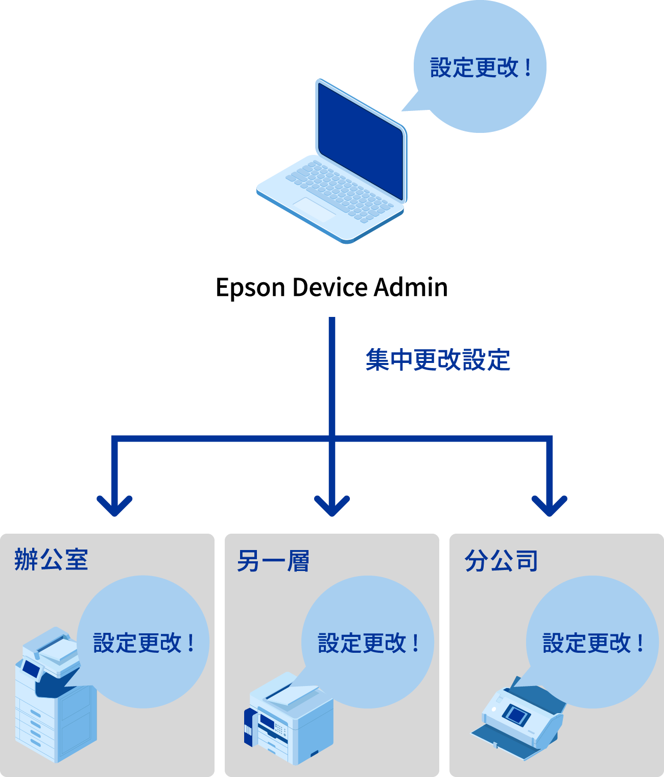 「Epson Device Admin」可讓您透過網路使用遠端操作批次配置裝置。